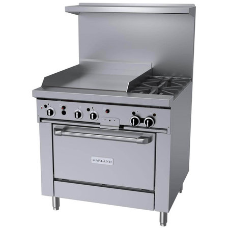 Garland GFE36-2G24C, 2 Burner Gas Restaurant Range w/ 24" Thermostatic Griddle, 1 Convection Oven, 126,000 BTU