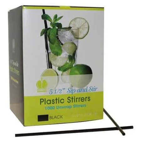 Plastic sip & stir straws, black. Case of 10,000.