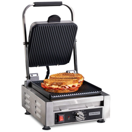 Hamilton Beach 25095, 1.8 kW Single Panini Sandwich Grill, Ribbed Top & Bottom