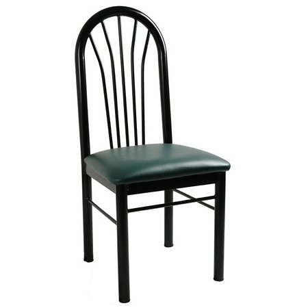 19" Seat height. Black semi gloss finish metal chair w/ black vinyl seat.