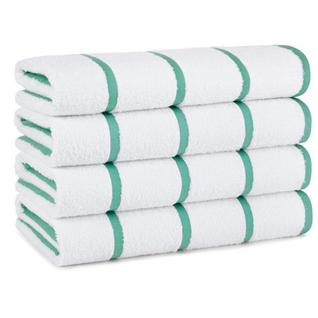 Hospeco BT-HS3060-15GR, 30" x 60" Las Rayas Cotton-Poly Blend Beach Towel, Green Stripe (24/pk)