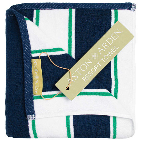 Hospeco BT-PINSTR-25BMN, 30" x 70" Aston & Arden Cotton Beach Towel, Navy/Mint Stripe (8/case)