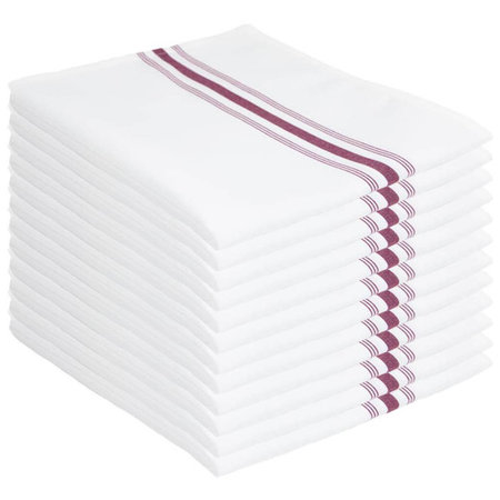 Hospeco NAP-BISTRO-BUR, 18" x 22" Mariposa Spun Polyester Bistro Napkins, White w/ Burgundy Stripe (300/case)
