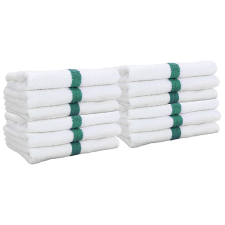 Hospeco PWR-1627-3GRCS, 16" x 27" Power Gym Cotton Hand Towel, Green Stripe (120/case)