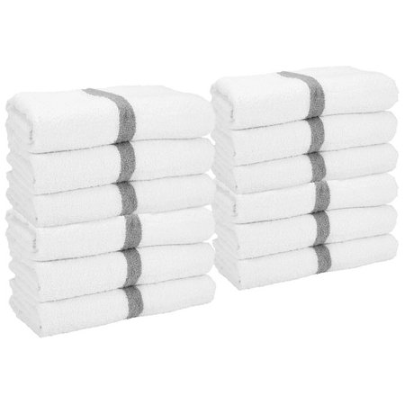 Hospeco PWR-2244-6GYCS-CS, 22" x 44" Power Gym Cotton Towel, White w/ Gray Stripe (60/case)