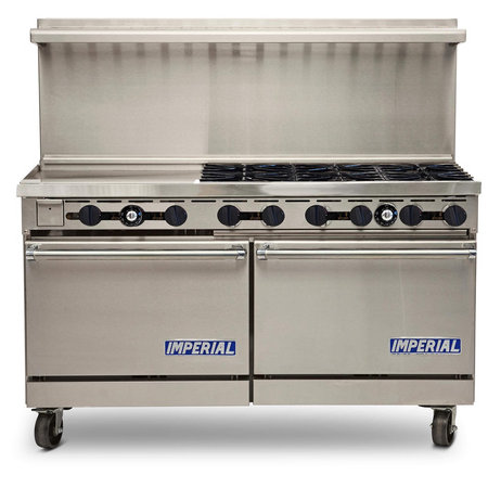 Imperial Range ER-6-G24, 6 Burner Gas Restaurant Range w/ 24" Manual Griddle, 2 Standard Ovens, 268,000 BTU