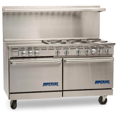 Imperial Range IR-6-G24T-E, 6 French Plate Electric Restaurant Range w/ 24" Thermostatic Griddle, 2 Standard Ovens, 32.2 kW