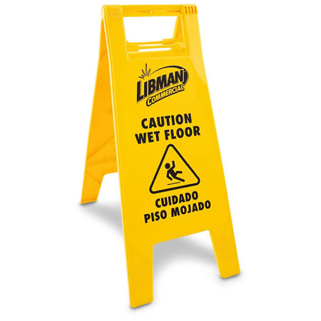 Libman Commercial 1811, 25-1/2" Yellow Double Sided Wet Floor Sign, English/Spanish