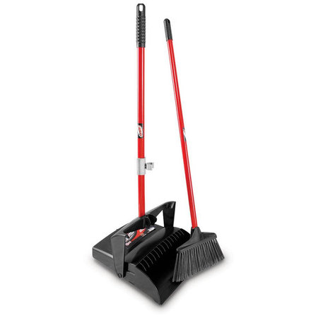 - Broom clips onto dustpan handle which locks in upright position for easy storage