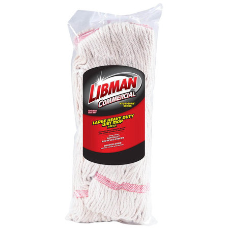 Libman Commercial 1793, 28 oz Poly-Cotton Looped End Wet Mop Head, White
