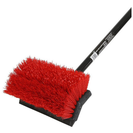 - Bi-Level floor scrub brush with squeegee and 54" black steel threaded handle