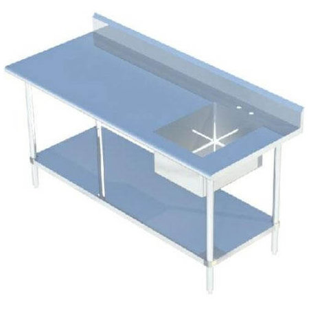 Sapphire Manufacturing SMTPS-2472R, 72" x 24" Stainless Steel Work Table Prep Sink