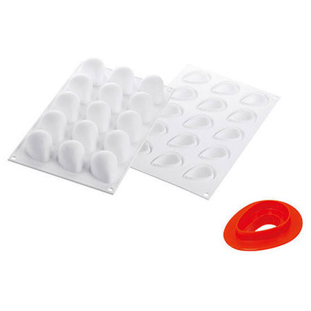 SilikoMart CURVEFRAGOLA30, 15-Compartment Silicone Strawberry Baking Mold