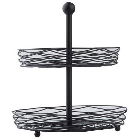 TableCraft 12152, 2-Tier Artisan Collection Metal Basket Display Stand, Black