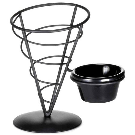 TableCraft ACR259, 5-1/8" x 9-1/2" Vertigo Collection Wire Fry Cone w/ 2 Cup Rings, Black