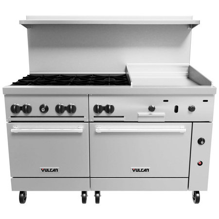 Vulcan 60SC-6B24GP, 6 Burner Propane Gas Restaurant Range w/ 24" Manual Griddle, 1 Convection Oven, 1 Space Saver Oven 278,000 BTU