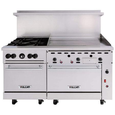 Vulcan 60SS-4B36GP, 4 Burner Propane Gas Restaurant Range w/ 36" Manual Griddle, 1 Standard Oven, 1 Space Saver Oven 238,000 BTU