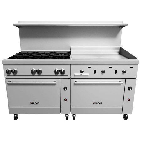 Vulcan 72SC-6B36GTN, 6 Burner Natural Gas Restaurant Range w/ 36" Thermostatic Griddle, 1 Convection Oven, 1 Standard Oven, 310,000 BTU