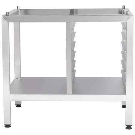 Stainless steel short stand with 6 shelving levels for Vulcan CHEF-101 and CHEF-61 series combi ovens.