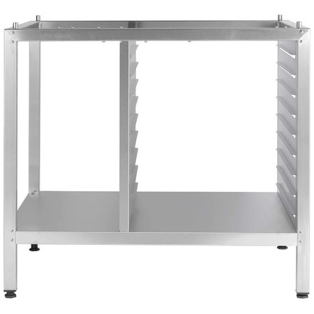 Stainless steel tall stand with 9 shelving levels for Vulcan CHEF-102 and CHEF-62 series combi ovens.