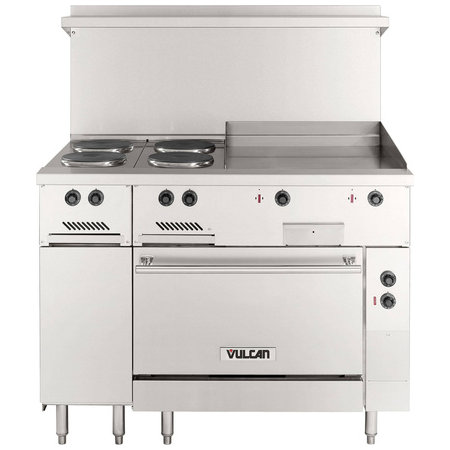 Vulcan EV48S-4FP24G480, 4 French Plate Burner Electric Restaurant Range w/ 24" Thermostatic Griddle, 1 Standard Oven, 19.8 kW
