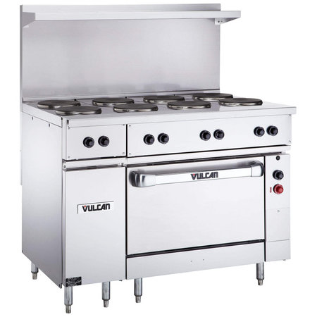 Vulcan EV48S-8FP480, 8 French Plate Burner Electric Restaurant Range, 1 Standard Oven, 21 kW