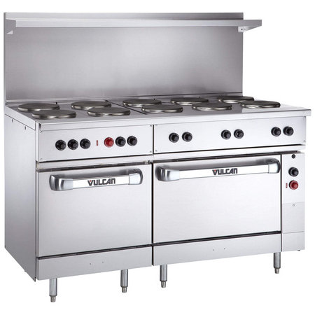 Vulcan EV60SS-10FP480, 10 French Plate Burner Electric Restaurant Range, 1 Standard Oven, 1 Space Saver Oven, 30 kW