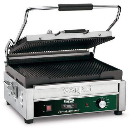 Waring WPG250TB, 2.8 kW Single Panini Sandwich Grill w/ Timer, Ribbed Top & Bottom