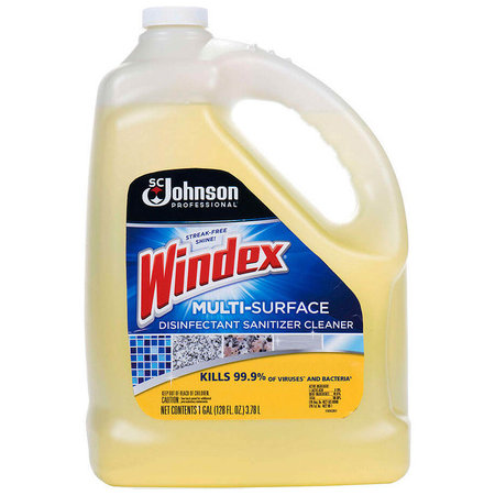 The Windex® 682265 1 gallon multi-surface disinfectant sanitizer cleaner leaves a streak-free shine for beautiful reflections! It also kills germs, viruses, and bacteria on glazed ceramic tile, windows, plastic, vinyl, glass, and more!